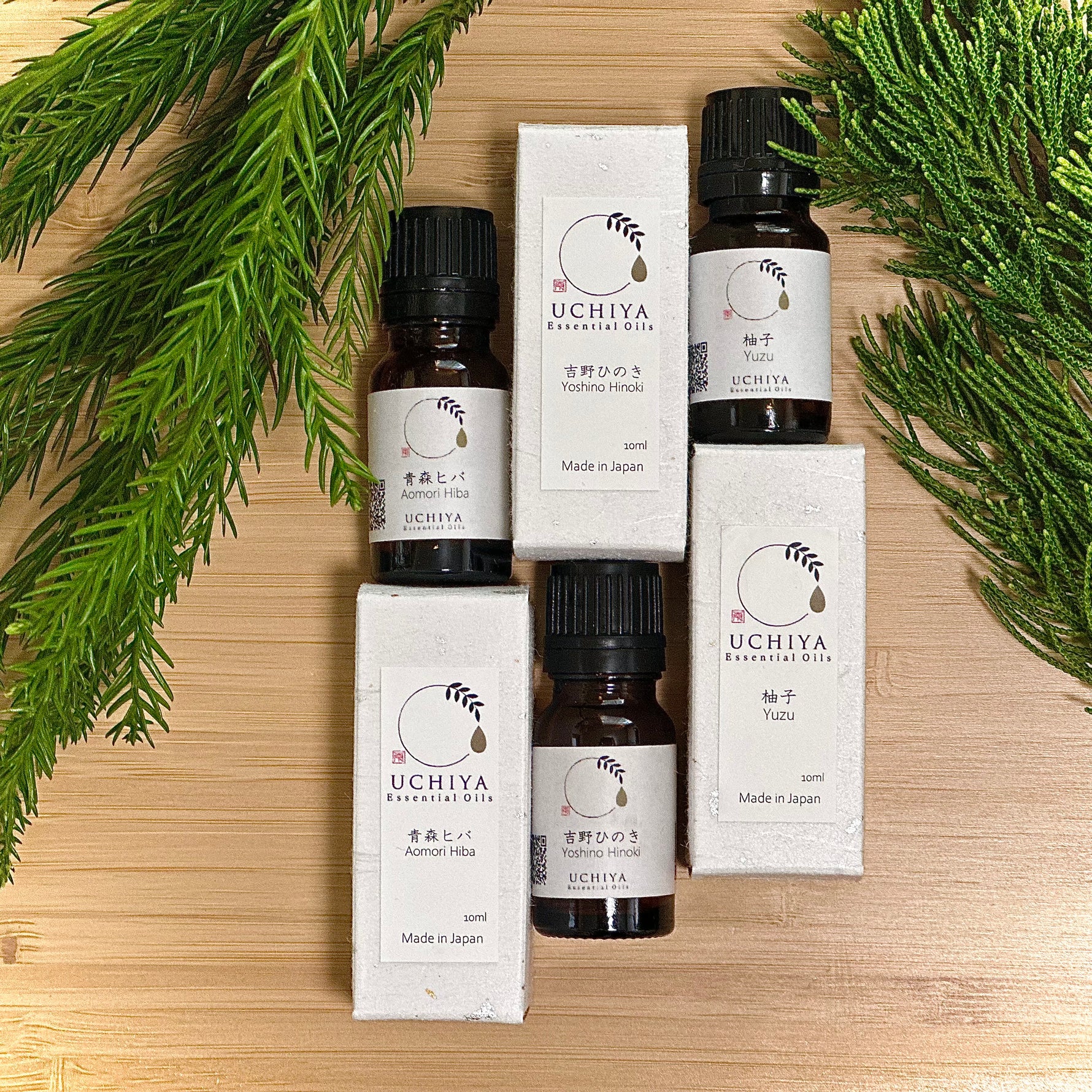Yoshino Hinoki essential oil, Aomori Hiba essential oil, Yuzu essential oil, 10ml each.